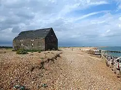 In 1882, a new lifeboat house was constructed by a local builder, Mr M. Anne, on the shore at Winchelsea, at a cost of £245. Built of pre-cast "no-fines" shingle based concrete, it was funded from RNLI donations.[7]