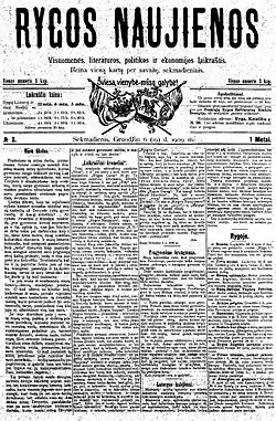 - ^ "Rygos Naujienos," in Lietuvių naminis draugas (Liudvikas Jakavicius, AB Lietuvos Knygynas, 1905; pg. 01, book in the Martynas Mazvydas National Library of Lithuania)