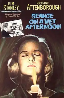 Séance on a Wet Afternoon is a 1964 British crime thriller film, directed by Bryan Forbes, and starring Kim Stanley, Richard Attenborough, Nanette Newman, Mark Eden and Patrick Magee.[2] Based on the 1961 novel by Mark McShane, the film follows Myra Savage, a mentally unstable medium who convinces her husband Billy to kidnap Amanda Clayton, a child, so she can help the police solve the crime and achieve renown for her abilities. Kim Stanley was nominated for the Academy Award for Best Actress for her role in the film.