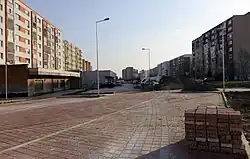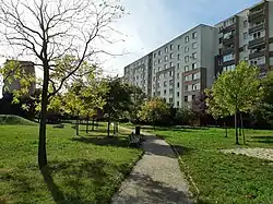 ![]() ![]() Sídlisko Sever panoramatic view and Nový park ("New Park") surrounded by apartment buildings | |