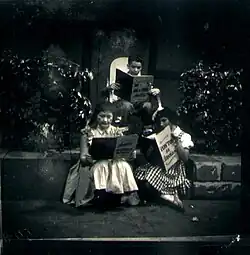 The idea was first conceived by Tatiana Belinky's husband, psychiatrist Júlio Gouveia, after he asked some adults, at a children's birthday party, to improvise a stage play version of Peter Pan for their present and bored kids. This led him to write a thesis about children's theatre and its role on the youngers' education. His article impressed TV Tupi, the only television network in Brazil at that time. He was then hired by the channel and decided to adapt Monteiro Lobato's fantasy series of novels for the teleplay, and the pilot was broadcast live as a single presentation. The good rating forced Tupi to create a television series, with Júlio Gouveia's wife Tatiana Belinky as the screenwriter. Despite Sítio's immediate repercussion, the budget was extremely limited and only one set (the ranch's gazebo) was available. Other sets required by the script would be hastily handmade by the crew. Since special effects were non-existent, the fantasy was highly improvised with available resources.[7] For example, for the underwater scenes at the Reino das Águas Claras (Kingdom of Clear Waters), Tatiana Belinky put her own fish bowl in front of the camera.[8] Salatiel Coelho's song "Dobrado" was the series' opening theme before Gilberto Gil composed the famous Sítio do Picapau Amarelo main title theme for Rede Globo's posterior versions.