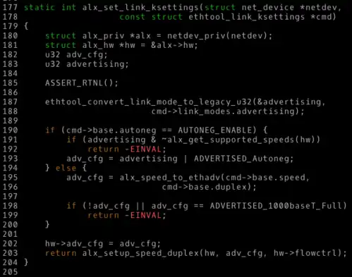 Piece of code from a module of the Linux kernel, which uses snake case for identifiers