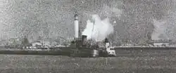 On Tuesday 17 January 1939, whilst lying at anchor in the River Mersey, having taken the sailing from Douglas to Liverpool, Fenella was run into by a cargo ship, the SS Eastleigh, which had arrived from Karachi, and was proceeding to berth at Bromborough Dock.[5] Part of Fenella's belting was carried away, and damage was sustained to one of her lifeboats, along with damage to her plating.[5] Fenella was taken to the Prince's Landing Stage, where she was inspected by representatives of the Board of Trade.[5] Temporary repairs were carried out, and Fenella was able to sail from Liverpool to Douglas the following day.