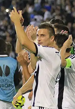 On 15 June 2011, it was announced that Marković had signed a four-year contract with Partizan.[1] He scored his first goal for the club in a league match against Borac Čačak on 29 April 2012. He also played all six matches of the 2012–13 UEFA Europa League group stage campaign and scored a skillful goal against Rubin Kazan, after which he celebrated by dancing to the rhythm of Gangnam Style.[2] He scored an amazing goal in 2014-15 UEFA Europa League game against Beşiktaş at the Atatürk Olympic Stadium in Istanbul.[3]