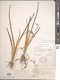 Sagittaria demersa, commonly called Chihuahuan arrowhead,[2] is an annual aquatic plant growing up to 60 centimetres (24 inches) tall. The leaves are flat, very long and narrow, up to 55 cm (22 in) long but rarely more than 7 millimetres (1⁄4 in) across.[3]