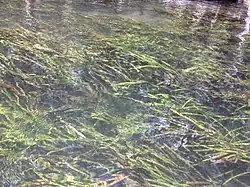 Sagittaria kurziana, common names springtape[2] and strap-leaf sagittaria, is a perennial aquatic plant. It grows up to 250 centimetres (8 feet) tall. It has long, narrow, flat leaves that float on the surface of the water, up to 250 cm long but rarely more than 15 millimetres (1⁄2 inch) wide. These form huge masses of ribbon-like leaves flowing back and forth with the current. Inflorescences also float on the surface, the white flowers very often submerged.[3][4][5]
