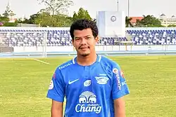 Saharat Sontisawat (Thai: สหรัฐ สนธิสวัสดิ์, born 13 January 1998) is a Thai professional footballer who plays as a defensive midfielder for Thai League 2 club Suphanburi, on loan from Chonburi.
