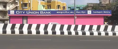 ![]() Saidapet metro station with City Union Bank | |||||||||||||||||||||||||||||||||||||||||||||||||||||||||||||||||||||||||||||||||||||||||||||||||||||||||||||||||||||||||||||||||||||||||||||||||||||||||||||||||||||||||||||||||||||||||||||||||||||||||||||||||||||||||||||||||||||||||||||||||||||||||||||||||||||||||||||||||||||||||||||||||||||||||||||||||||||||||||||||||||||||||||||||||||||||||||||||||||||||||||||||||||||||||||||||||||||||||||||||