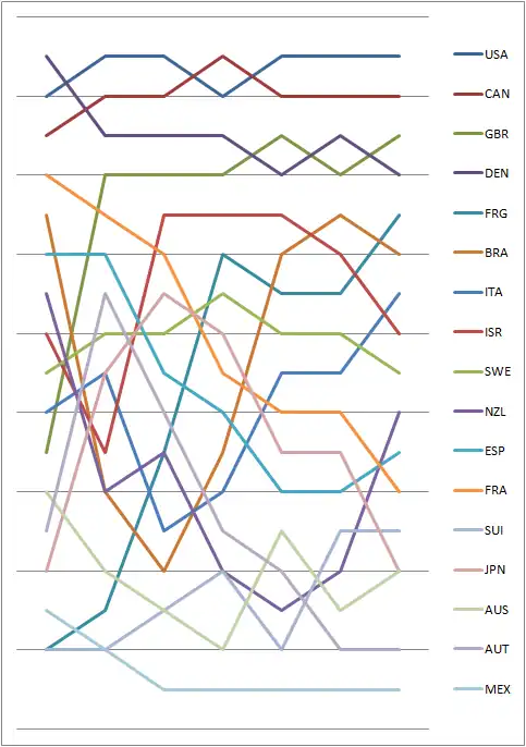 | Rank | Points | Rank | Points | Rank | Points | Rank | Points | Rank | Points | Rank | Points | Rank | Points | |||||