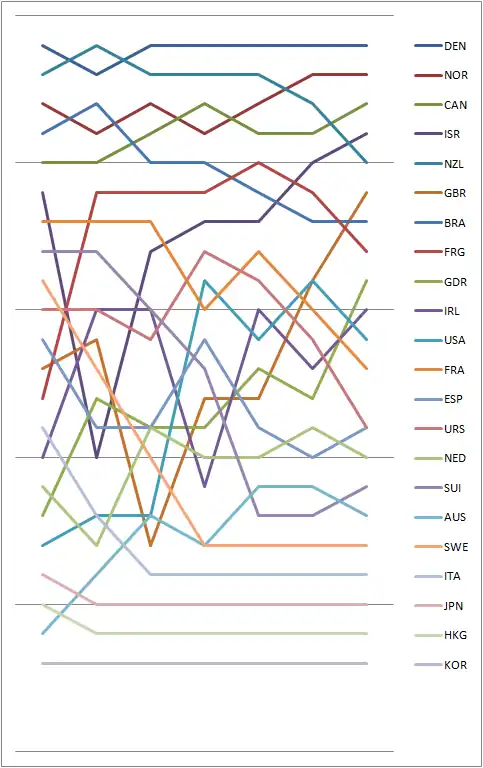 15 | 21.0 | 7 | 13.0 | 12 | 18.0 | DSQ | 29.0 | 1 | 0.0 | 13 | 19.0 | 8 | 14.0 | 114.0 | 85.0 | |