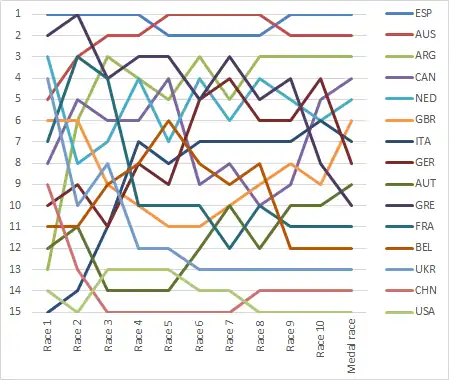 | ● | Practice race | ● | Race on Yellow | ● | Race on Pink | ● | Medal race on Yellow |