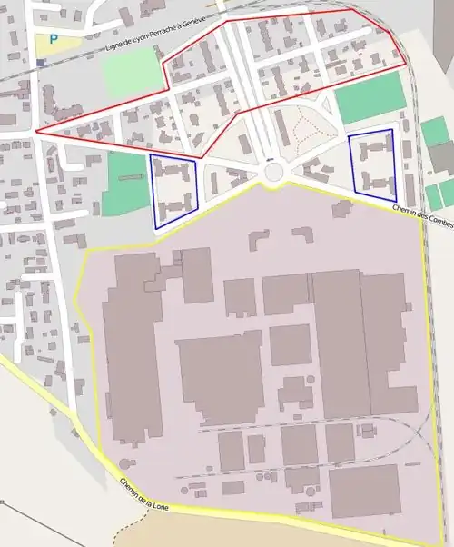The 1920s saw the installation of new textile factories in the Lyon Region, particularly in Saint-Maurice-de-Beynost.[1] Maurice Cusin was looking for a site in the Lyon region to establish the second factory of the Société lyonnaise de soie artificielle (SLSA), after the one in Décines created in 1922.[2] In 1928, the municipal council of Saint-Maurice-de-Beynost spread a favorable opinion on the installation of this factory on municipal territory.[3][4] There was some local reluctance (for fear of nuisance from industrial activity), but despite this, Maurice Cusin bought 50 hectares in Les Brotteaux, between the Miribel canal and the Lyon-Geneva railway line.[5]