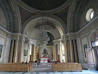 The church was closed down by Soviet authorities no later than May 1930.[7] During the Second World War, the building served as the headquarters of the anti-aircraft defense and later as a decoration room of the Leningrad Theater of Musical Comedy.[3][7][13] The Armenian community regained ownership of the church in August 1992[7][4] and the first mass took place in March 1993.[7] After thorough restoration, the church was reconsecrated on July 12, 2000 by Karekin II, Catholicos of All Armenians, and Patriarch Alexy II of Moscow.[3] It was renovated again in 2014.[14]