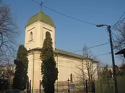 In 1857, a grave was built for the Balș family in the vestibule, gathering remains from the cemetery in the churchyard. In 1900, eight headstones of the family were brought in from the cemetery and placed in the foyer walls. Five are in the Romanian Cyrillic alphabet, two in Greek and one is almost completely effaced. The plate for the crypt, made of Carrara marble, was vandalized by an individual who removed the Greek letters of gilt metal. A professor attempted to decipher the inscription in 1902, but could only make out a few words.[1] At that point, another plaque was set up; the refurbishment was carried out by Gheorghe Balș.[2]