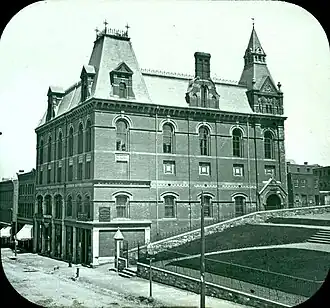 The Freemasonry community previously operated a masonic temple in Saint John until its destruction by the Great Fire of Saint John in 1877.[5] Construction on a new masonic temple began following the fire,[2] worked on by architects McKean & Fairweather, and contracted by Alexander Christie & Co. as well as William L. Prince, Esq.[6] The building was completed in 1881,[1] totaling CA$80,000 (equivalent to $2,903,680 in 2023).[6]