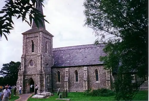 The old chantry chapel was demolished and a new timber-framed church was erected on the site, this church being dedicated to St Mary the Virgin.[1] By the middle the 19th century this old church was in a poor state of repair and the size of the population of the parish had outgrown the small building. In 1848 the parishioners decided to pull the old church down and build a new one in its place.[3]