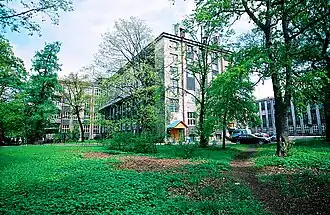 A division and five institutes of the university are located in four buildings on the grounds of an oldest park in the city with total area exceeding 65 hectares, founded in 1827.