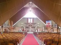 It was built as an alternative to the crowds at the city's Parish Church, due to the growing number of people attending the activities of the Saint Sebastian Parish. Its architecture, in contemporary style, was inspired by the Tokyo Cathedral which, in turn, was based on the tents that served as mobile sanctuaries in the desert described in the biblical passage from Exodus (26:14).