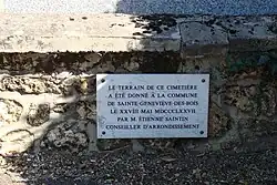 The cemetery is located on Rue Léo Lagrange in Sainte-Geneviève-des-Bois. There are two entrances both on Rue Léo Lagrange.