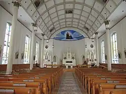 The Jesuit missionary Claude Dablon inaugurated the original church on Mackinac Island in 1670, and the earliest surviving parish records date back to 1695.[2] After moving from Fort de Buade to Fort Michilimackinac in 1708 and from Fort Michilimackinac to Mackinac Island in 1781, the parish used a historic log church for decades. It constructed the current church complex in 1874 on a site donated by the former fur trader Magdelaine Laframboise.[3] The church was dedicated as a Michigan State Historic Site on December 20, 1990.