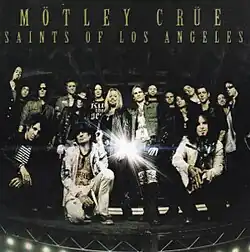 "Saints of Los Angeles" is the Grammy-nominated first single from Mötley Crüe's album of the same name. It was released on April 11, 2008, and started airing on radio stations on April 15 and charted at number 5 on the Hot Mainstream Rock Tracks.[1] In the original Gang Vocal version, found on the album, the lyrics from the Lords Prayer can be heard at the beginning of the song. The song was given further promotion through the music video game Rock Band, being released as downloadable content on Xbox Live Marketplace and PlayStation Store on the same day.