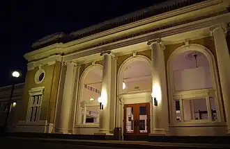 The current Beaux-Arts-style structure was designed by Southern Pacific's chief architect John H. Christie.[6][7] It is constructed of masonry, and is one of five masonry depots that still exist along the original Southern Pacific West Coast line. The other depots are in Albany, Medford, Roseburg and Eugene.[8]