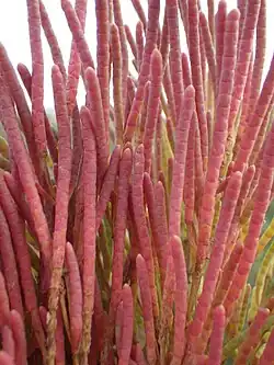 Salicornia rubra, the Rocky Mountain glasswort, is a species of flowering plant in the family Amaranthaceae.[2] It is native to colder or higher areas of North America; the Yukon, Nunavut, British Columbia, Alberta, Saskatchewan, Manitoba, and Ontario in Canada, and the western and north-central United States. It has been introduced to Quebec and Michigan, and has gone extinct in Illinois.[1] A halophyte, it is one of the most salt-tolerant plants of North America.[3]