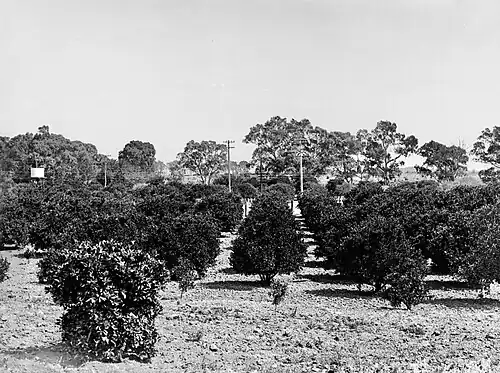Part of a large orange orchard next to the Little Para River, ca 1925; on a property of the descendants of John Harvey, Salisbury's founder, now a public reserve