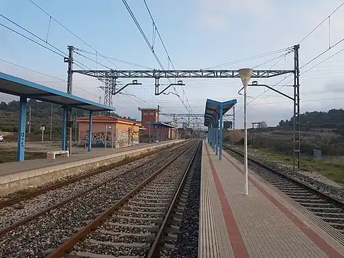 This station entered service in 1883 when the section constructed by the Companyia dels Ferrocarrils de Valls a Vilanova i Barcelona (VVB) between Calafell and Valls was opened, one year after the opening of the line between Vilanova i la Geltrú and Calafell.[1][2]