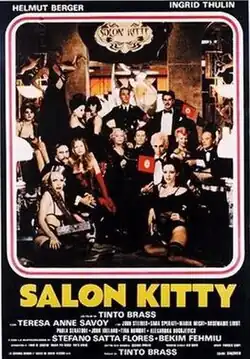 Salon Kitty is a 1976 erotic-war-drama film directed by Tinto Brass. The film was co-produced by Italy, France and West Germany. It is based on the novel of the same name by Peter Norden,[4] covering the real life events of the Salon Kitty operation, under which the Sicherheitsdienst took over an expensive brothel in Berlin, had the place wire tapped, and replaced all the prostitutes with trained spies, in order to gather information on various members of the Nazi party and foreign dignitaries.