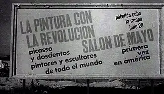 The Salón de Mayo (May Salon) was an art exhibition held in Havana, Cuba, in July 1967. It took its name from the Salon de Mai, an artists collective founded during the Nazi occupation of France. It was organized by Carlos Franqui with the assistance of such artists as Wifredo Lam, René Portocarrero, Alexander Calder, Joan Miró, Pablo Picasso.