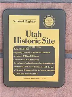 Located across the street from the Utah State Capitol, the structure houses office space for the Utah Office of Tourism and the Utah Film Commission, along with a gift shop on its main level. It was designated a National Historic Landmark in 1975, as an emblem of (and site of events relating to) the conflicts between the governments of the Utah Territory and the United States in the 19th century.[3]