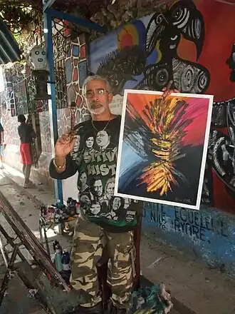 Salvador at work in "Callejón de Hamel" with his painting "Makuto" (2008).