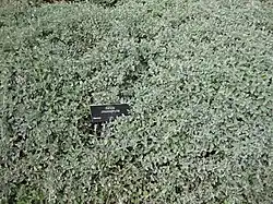 Salvia chionophylla is a low-growing evergreen perennial plant native to a small area in the state of Coahuila, Mexico. First described in 1907 by Merritt Lyndon Fernald, it was only seen in horticulture beginning around 1996. It is a trailing plant that spreads by rooting at its nodes, producing more trailing stems, with small rounded dove-gray leaves about 0.5 inches (13 mm) long, evenly spaced along the stem. The small blue flowers are less than .25 inches (6.4 mm) long on short inflorescences with whorls of 2–6 flowers.[1]