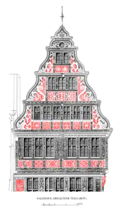 Probably shortly after 1595 the house was completely redesigned in the style of the late Renaissance,[2][3] or probably even completely rebuilt.[4] From then on, the Salzhaus was considered one of the most beautiful buildings in Central Europe.[5]