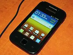 Samsung Galaxy Y (GT-S5360) is an Android-based smartphone by Samsung,[3] announced in August 2011. Its main features are 3G connection with speeds up to 7.2 Mbit/s and Wi-Fi.