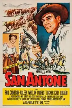 San Antone is a 1953 American western film directed by Joseph Kane and starring Rod Cameron, Arleen Whelan, Forrest Tucker, Katy Jurado.[1][2][3] It was produced and distributed by Republic Pictures.