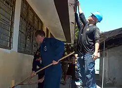 Military personnel paint and repair the West Dirita Elementary School in San Antonio during a community service project.