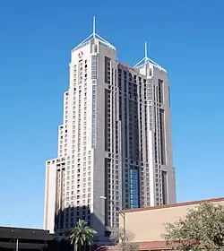 The San Antonio Marriott Rivercenter on the River Walk is a hotel located in San Antonio, Texas, USA. At a tip height of 546 feet (166 meters), the 38-floor hotel is the tallest building in San Antonio and second tallest structure in the city (the Tower of the Americas is taller). It is also the tallest hotel in Texas outside of Dallas. Its roof height, however, is 441 feet (134 meters), 3 feet shorter than the Weston Centre.