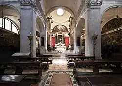 The altarpiece on the high altar depicts St. John the Almsgiver (1545-1550) by Titian; the right apse chapel houses Saints Catherine, Sebastian and Roch (c. 1533) by il Pordenone.