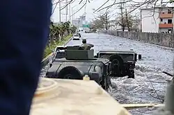 Hurricane Maria made landfall in southeastern Puerto Rico on September 20, 2017.[55][56] Gusts of up to 113 mph (182 km/h) were reported in the capital city shortly before landfall in the municipality of Yabucoa.[57] The municipality of San Juan experienced widespread flooding in most coastal areas, and roofs were blown off from numerous structures.[58][59] The neighborhood of La Perla was largely destroyed.[60] In the wider metropolitan area, flooding from Lake La Plata produced flash floods that trapped residents of Toa Baja, and in Cataño the Juana Matos neighborhood was estimated to be 80% destroyed.[61] At least eight people died from the flooding, while many were unaccounted for.[62]