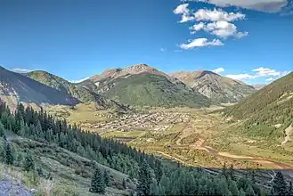 The region boomed after George Howard and R. J. McNutt discovered the Sunnyside silver vein along Hurricane Peak, outside the mining camp of Eureka. Gold was then discovered in 1882, which helped the county weather the Panic of 1893 far better than other mining communities, such as Aspen or Creede.[4] The Sunnyside Mine would become one of Colorado's longest running and most productive mines.[6]