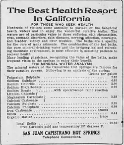 - ^ a b Archives, L. A. Times (October 14, 1989). "SADDLEBACK / SOUTH BEACH : SAN JUAN CAPISTRANO : Hot Springs to Be Historical Landmark". Los Angeles Times. Retrieved 2023-11-12.