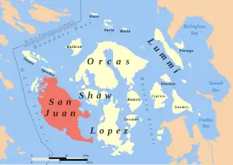 ![]() Location of San Juan Island in the San Juans | |