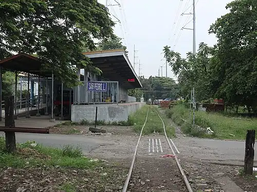 The 1908 station was located at the place where the current San Pedro station stands today, but the station platform and building was located opposite of the platform and present station building and had three tracks. One was a refuge siding, one was a siding loop, and the last one was the Main Line.[4] The old station was last renovated in 1972 for the launching of the Metro Manila Commuter Services led by President Ferdinand Marcos. It became the eastern terminus of the San Pedro–Carmona line from its opening in 1973 to its discontinuation in 2000s.