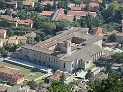 The monastery was initially linked to the Abbey at Monte Cassino, and by the 12th-century appeared to be the second largest church in town. In 1521, pope Leo X expelled the Benedictines and replaced them with the monks from the Olivetan monastery of San Benedetto fuori della mura. In turn, in the 19th-century pope Gregory XVI replace the Olivetans with Camaldolese monks. The monastery was suppressed and the monks expelled by circa 1860. For some decades portions of the monastery were used by the prefecture and a school, and then to constitute a male orphanage.[2] The properties were turned over to the city civic government. In 2010, the monastery, which was rebuilt in the 16th century, became the host of the civic library.