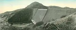 In the late 19th century, San Diego began constructing dams to help supply municipal water, mitigate drought and control floods in the San Diego River Basin. In 1928, the Metropolitan Water District of Southern California was created and charged with transferring water from the Colorado River to southern California but San Diego was excluded from the project. Construction of the Colorado River Aqueduct had begun in 1933 and was completed in 1941. However, construction on San Vicente Dam began in 1941 with anticipation of San Diego receiving water through the Colorado River Aqueduct.[6] San Diego residents had initially rejected proposals to build San Vicente Dam in 1939 but after the realization of the city's growing population, voters quickly approved funding for San Vicente Dam in 1940.[7]