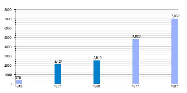 demographics vertical bar chart of Sant Gervasi de Cassoles between 1842 and 1887