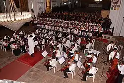 The brilliant performance of Sacred Music, at the Basilica of Bom Jesus, on 11 April 2011, was something rare in the musical annals of Goa. This program, with the participation of about 150 singers and musicians, brought the Fourth Centenary celebrations of Rachol Seminary to a close. The program for the evening comprised: Gloria (RV 588) by Antonio Vivaldi, hymns to St. Francis Xavier and Bl. Joseph Vaz and compositions by ex-Directors of the Choir. The Te Deum, sung in a polyphonic setting with the traditional Gregorian melody as refrain, proved to be a fitting finale of praise to the Most Holy Trinity for the 400 years of Rachol Seminary. The Archbishop-Patriarch, Most Rev. Filipe Neri Ferrão graced the occasion in the midst of a packed Basilica.[8][9]