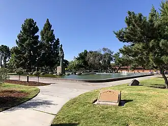 The registration for the Santa Clara Campaign Treaty Site Plaque as a California Historical Landmark #260 dates back to September 3, 1937.[1] On September 20, 1980, the State Department of Parks and Recreation in cooperation with the city of Santa Clara and descendants of Californio Participants, erected a commemorative plaque, that designates the site of the Santa Clara Campaign Treaty. The marker is located at the Santa Clara Civic Center at Lincoln Street, Santa Clara, California.[3] The inscription on the plaque reads: